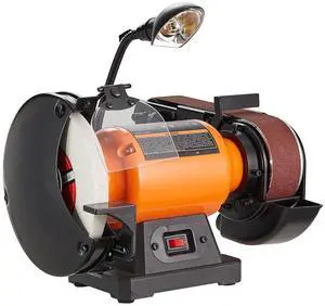 8 Inch Bench Grinder with 2 x28 Inch Belt Sander Combo, Bench Grinder Sander with 2.5A Induction Motor for Metalworking Sharpening Grinding