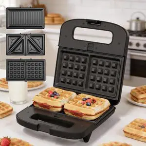 Waffle Iron, Panini Press Grill and Sandwich Maker Set, 3 in 1 Electric Sandwich Press with Removable Non-Stick Plates, Indicator Lights