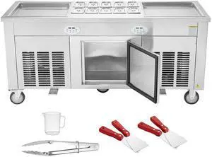 Fried Ice Cream Roll Machine, 2Pcs 17.7" x 17.7" Square Stir-Fried Ice Cream Pans, Stainless Steel Commercial Rolled Ice Cream Maker with Compressor and 4 Scrapers, for Ice Cream, Frozen Yogurt