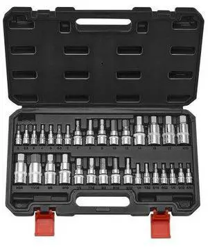 VEVOR Hex Bit Socket Set 32-Piece S2 Alloy Steel Cr-V Steel Standard SAE and Metric