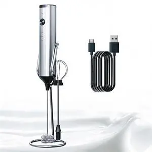 Rechargeable Milk Frother Handheld with 2 Detachable Stainless Steel Whisk, 3 Speeds Electric Whisk Foam Maker, Handheld Drink Mixer, Frother Wand for Coffee, Latte, Protein