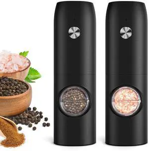 Electric Salt and Pepper Grinder Set, Rechargeable Automatic Pepper Mill Grinder with LED Light, Adjustable Coarseness shakers, One-Hand Operation for Kitchen Appliances(2 Pack Black)