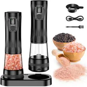 2Packs Electric Salt and Pepper Grinder Set, Rechargeable Automatic Pepper Mill Grinder with Digtal Display and LED Light, Adjustable Coarseness, Large Capacity Kitchen Essentials Gift for Women