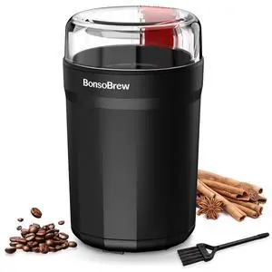 Electric Coffee Grinder, 180W Coffee and Spice Grinder for Coffee Beans, Herbs, Grains, Seeds - One Touch Safety Lid with Stainless Steel Blades - 2.5oz Capacity Includes Cleaning Brush
