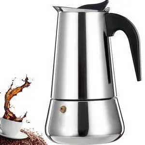 Espresso Maker with Milk Frother Electric Moka Pot 2-in-1 Espress Machine Aluminium One-Touch Operation Milk Froth Fine and Dense Black 110V