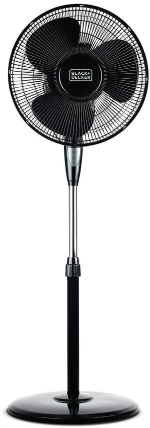 BLACK+DECKER 16 Inches Stand Fan with Pedestal Base, Height Adjustable Pedestal Fan with Remote and Touch Control Panel, Free Standing Fan with 90-Degree Oscillating and 3-Speed Settings, Black