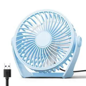 Edvision USB Desk Fan, 5 Inch Small Portable, 3 Speeds Powerful Wind Mini Personal Desktop Fan 360° Rotation Adjustable, Plug In USB Fan Quiet for Table Home Office Travel Car(Blue)
