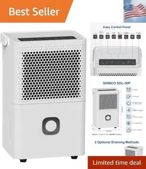 30 Pints Dehumidifier for Home and Basements, 1500 Sq.Ft Dehumidifier with Dr...