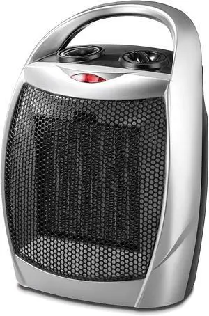 Small Electric Space Heater,Portable Ceramic Space Heater Fan for Office with Adjustable Thermostat and Overheat Protection ETL Listed for Kitchen, 750W/1500W(Silver)