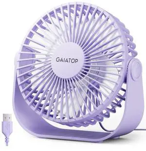 USB Desk Fan, 3 Speeds Strong Airflow, 5.5 Inch Portable 90° Rotate Quiet Cooling, Small Personal Table Fans for Bedroom Home Office Travel Purple