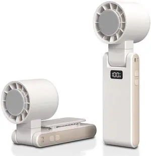 Portable Handheld Turbo Fan with Cooling Tech, Digital Display, 100-Speed Control, Rechargeable 4-in-1 Personal Fan for Travel, Outdoor, Office (White)