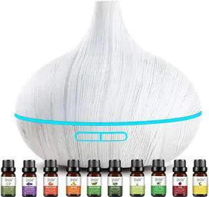 Gemdeck Ultrasonic Humidifiers with 10 Essential Oils, Aromatherapy Diffuser & Essential Oil Sets- 400ml Diffuser with 4 Timer & 7 Ambient Light Settings White