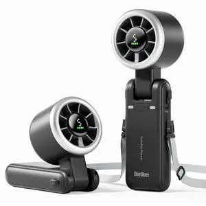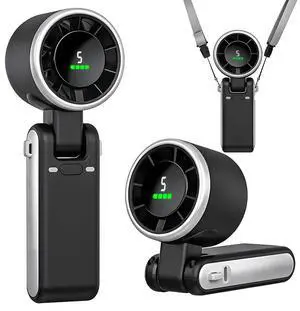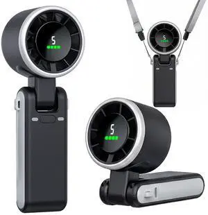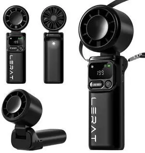 Portable Handheld Turbo Fan - Foldable Mini Fan with Air Turbo Tech, 1-199 Speed Adjustment, 20H Runtime, LED Display, Battery-Powered for Indoor/Outdoor Use, Dark Black