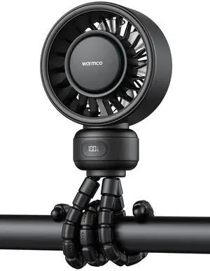 Portable Stroller Mini Fan, Small Rechargeable Personal Fan, Baby Travel Essentials for Wagon, Car Seat, Treadmill, Battery Powered Biking Gear Accessories, 360° Rotation, 3-Speed, Display, Black
