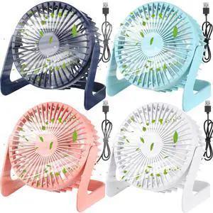 4 Pcs Desk Fan 5 Inch Small Table Fan Desktop USB Office Speeds Portable Quiet Operation and 360 Degree Rotate, Convenient Carry Handle Personal Table for Home, Office (Multi Color)