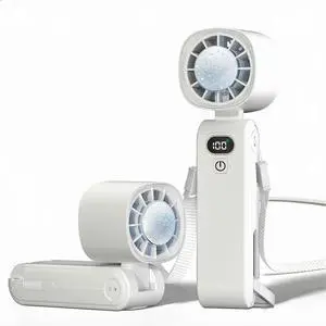 Handheld Portable Fan, Ice Cooling Fan, High Speed, Rechargeable, 5000mAh, 18H Max, LED Display, 5-Speed, 90° Foldable, 3-IN-1 Portable Hand/Desk/Neck Fan for Travel, Gift(Beige)