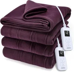 Sunbeam Royal Ultra Fleece Heated Electric Blanket King Size, 90" x 100", 12 Heat Settings, 12-Hour Selectable Auto Shut-Off, Fast Heating, Machine Washable, Warm and Cozy, Claret