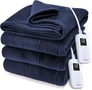 Sunbeam Royal Ultra Fleece Heated Electric Blanket King Size, 90" x 100", 12 Heat Settings, 12-Hour Selectable Auto Shut-Off, Fast Heating, Machine Washable, Warm and Cozy, Indigo