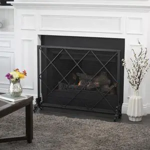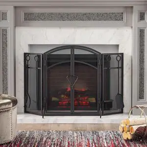Bi-fold Style Fireplace Doors with Smoke Tempered Glass (Color: Black, Size: Medium - Fits 30in to 37in W x 25.5in to 32.5in H)