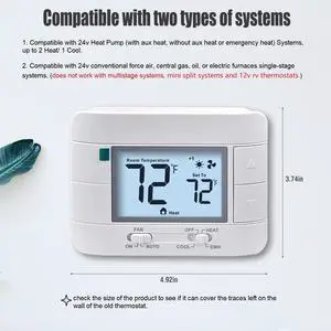 Thermostat for Heat Pump,NonProgrammable Thermostat for Home,Conventional Single-Stage Systems,2 Heat/1 Cool Heat Pump Or 1 Heat/1 Cool,Easy DIY Install, White Backlight