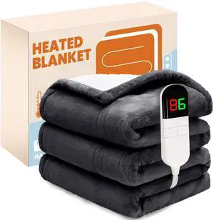 Electric Heated Blanket,Flannel & Sherpa Heated Throw Blanket 50"x60",Fast Heating Soft Fleece Blanket with 8 Heating Levels & 8H Auto Off - Grey