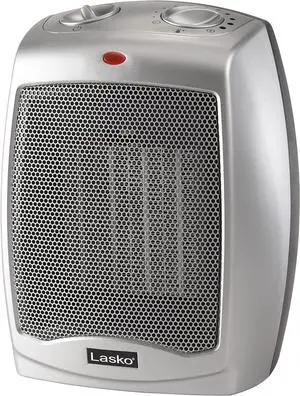 Lasko Desktop Electric Ceramic Space Heater with Adjustable Thermostat, 2 Heat Settings and Fan Only Mode, 9.2 Inches, Silver, 754200