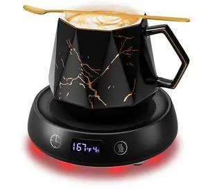 Coffee Mug Warmer & Marbling Mug Set, 1-9H Delay Start Timer Smart Heated Electric Cup Warmer for Desk Office, 3 Temperature Control Coffee Tea Beverage Warmer, 8H Auto Shut Off, Ideal Gifts for Man