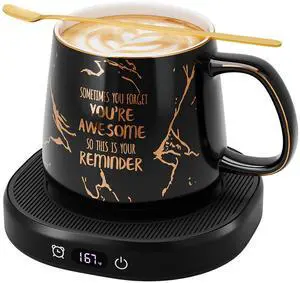 Coffee Mug Warmer, You are Awesome Mug with Coffee Warmer Set, Electric Coffee Cup Warmer for Desk 8 Hours Auto Shut Off, Tea Beverage Warmer with 4 Temperature Setting, Birthday Gifts for Women Man
