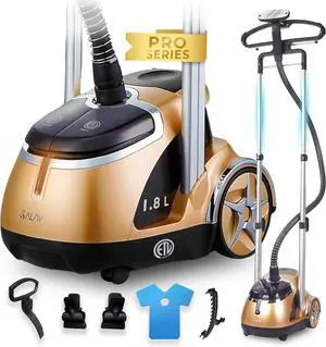 SALAV Limited Edition Professional Series Dual Bar Garment Steamer with Foot Pedals, Stainless Steel Steam Plate, Retractable Power Cord, 1.8L (60.8 oz) Water Tank, 1500 watts, 60+mins of Steam