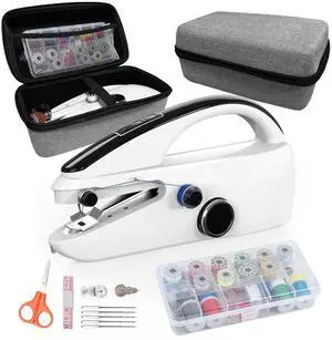 Features: Handheld Sewing Machine - the perfect hand sewing machine for beginners and a versatile tool for any sewing enthusiast. Its compact size and portability make it an ideal choice for those who love sewing on the go; Note: A thread is pre-threaded, which is the demonstration purposes only, to guide easily understand how to assemble the threads. If you don't need this thread, it is advisable to observe the path of travel of this thread or you can take a photo of it before removing it.