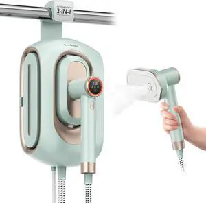 Steam Iron & Vertical Steamer for Clothes with Scratch-Resistant Durathon Soleplate, Digital Fabric Selector + 8 Retractable Cord, 3-Way Auto Shutoff, Anti-Drip, 1800 Watts, Green