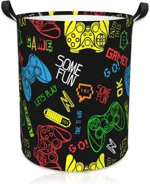 Naqiuli Laundry Basket Abstract Game Laundry Hamper Large Laundry Basket Storage Basket Tote Bag Collapsible Organizer Basket for Bathroom,Laundry,Bedroom 17.3 x16.5 Inch