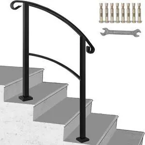 VEVOR Iron Step Handrail Stair Railing Kit For 3 Step Handrail Outdoor Deck Hand Rail