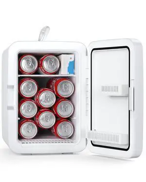 Compact Mini Fridge, 15 Can Portable Small Refrigerator with AC/DC Adapters, 10 Liter / 2.6 Gal Small Cosmetics Cooler for Beverage, Food, Skincare, Bedroom, Dorm, Office and Car, White