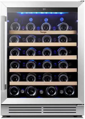 Yeego 24 Inch Wine Cooler 47 Bottle Capacity, LED Lighting, Dual Temperature Control (40-65°F), Stainless Steel Glass Door, Auto Defrost, Quiet Compressor Cooling for Home/Kitchen/Bar (5.12 cu.ft)
