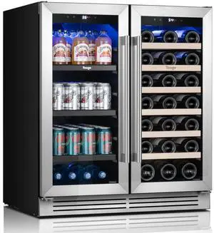 Yeego 30" Dual Zone Wine and Beverage Cooler & Energy-Efficient Wine Fridge 80 Cans+33 Bottles Capacity, Precise Temperature Control, Stainless Steel 2 Door,Ideal for Home/Bar/Office
