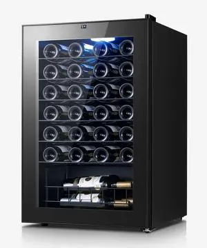 Yeego Hold 28-Bottle Wine Cooler,38-65 Touch Panel,Digital Temperature Control Wine Cellar Freestanding/Built-in With Glass Door,Adjustble Shelves For Home/Bar/Office