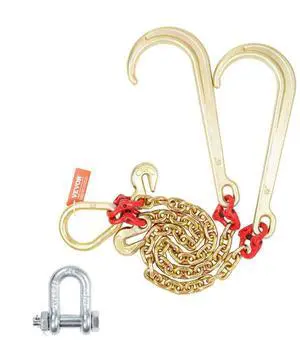 VEVOR 3/8" x 3' G80 Tow Chain J Hook V-Chain Bridle Grab Hook Wrecker 15600 lbs