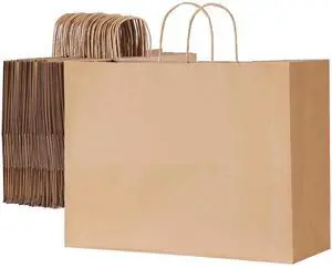 Kraft Paper Bags with Handles, 50Pcs 16 x 6 x 12 in, Large Paper Grocery Bags, Reusable & Recycled Brown Take-Out Sacks, Plain Party Bag Bulk for Birthday, Wedding, Business, Goody, Craft