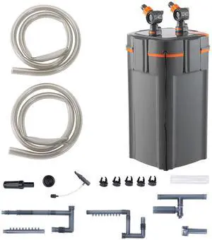 Aquarium Filter 317GPH, 4-Stage Canister Filter 100 Gallon, Ultra-Quiet Internal Aquarium Filter with UV Protection, Submersible Power Filter with Multiple Function for Fish Tanks, 12W