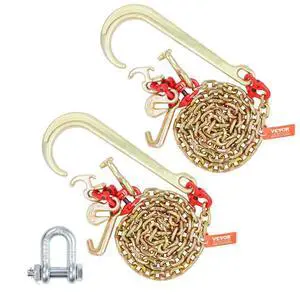 VEVOR 2PCS 5/16"x6' G80 Tow Chain 15" J Hook Long Shank RTJ & Grab Hooks Wrecker
