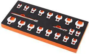 Crowfoot Wrench Set, 3/8" Drive 20-Piece Crows Foot Wrench Set with 2 Extension Bars and EVA Tool Organizer,40CR Material with Mirror Chrome Finish, SAE 3/8"-7/8" and Metric 10-22 mm,