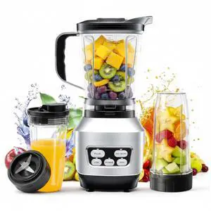 Smoothie Blender, 1200W Powerful Countertop Blenders for Kitchen, 60 oz Capacity Blender for Smoothies with BPA-Free Portable Cups, Ice Crushing, Juices, Shakes and Sauces, Silver