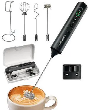 for Coffee, Rechargeable Electric Handheld Frother Wand with Dual Whisk, 3 Speed Settings, Fast Recharge, Powerful Motor, Handheld Mixer Electric with Stand
