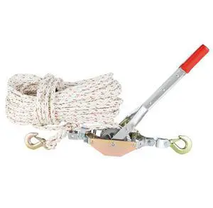 VEVOR Rope Puller, 3/4 Ton (1,653 lbs) Pulling Capacity, with 100' of 0.6" dia. Rope, 2 Hook, Come Along Winch, Heavy Duty Ratchet Power Puller Tool for Moving Boats, Securing Items, Transporting Logs