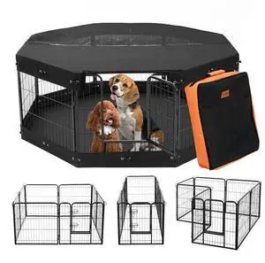 VEVOR Dog Playpen 8 Panels Foldable Metal Dog Exercise Pen with Top Cover 30"H