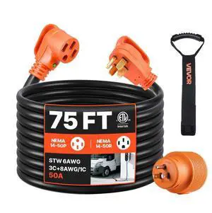 75 FT 50A RV Extension Cord STW 6/3 + 8/1 Gauge Wire NEMA 14-50P NEMA 14-50R ETL