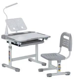 VEVOR Kids Chair and Desk Set Table Lamp Adjustable Height & Tilted Desktop Grey