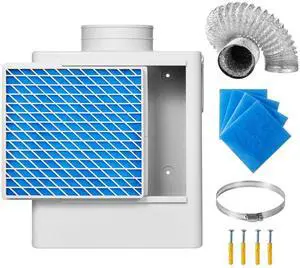 3-in-1 Indoor Dryer Vent Kit,Premium ABS Material Fits 4 inch Exhaust Port, Smart Overheating Reminder Exhaust Hood & Easy-to-Detach Mesh Cap & Multi-layer Purification with 4 Replacement Pads