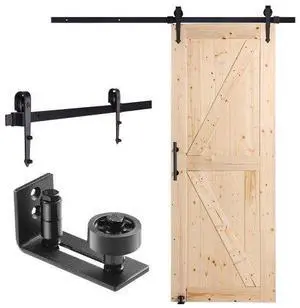 VEVOR Barn Door and Hardware Kit, 30" x 84" Wood Sliding Barn Door, Smoothly and Quietly, Barn Door Kit with 8-in-1 Floor Guide and Door Handle, Spruce Wood Panelled Slab, Easy to Install
